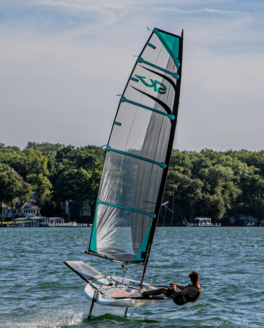 Slippery fast foiling Skeeta launched in the Spring 2023 and only sailed 5 times. Like new condition located just a few miles south of Melges Merritt Island Florida Sailing Center. Comes with all the stuff: 8.5 sqM mylar sail, carbon fiber stayed mast and boom, pre set Hydrofoils, padded foil bag, mast bag, and hull cover., aluminum collapsible beach trolley.